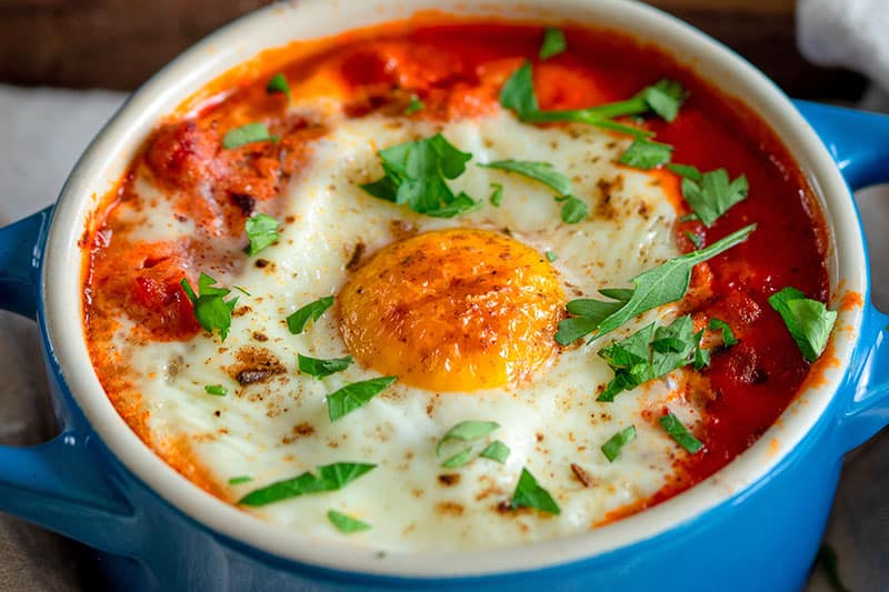 If you’re not a fan of spicy food, leave out the red pepper flakes or decrease the amount depending on your heat tolerance. The baked eggs still taste fantastic without the crushed red peppers.