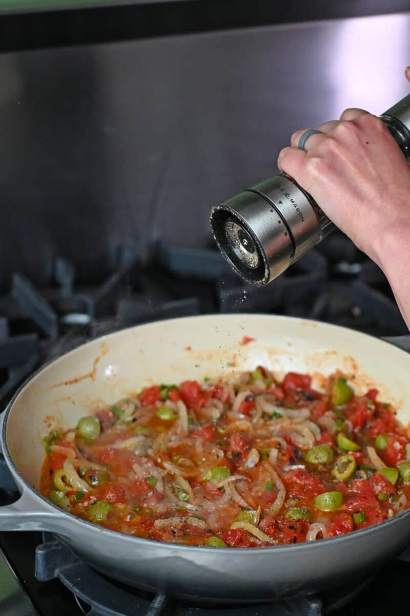 Veracruz sauce is a tomato-based sauce from the region in the Gulf Coast of Mexico that features tomatoes, capers, olives, oregano and bay leaves. If you’re thinking that this sauce is reminiscent of a Mediterranean dish, you aren’t wrong—these are definitely classic Mediterranean ingredients! The Port of Veracruz is one of the oldest in Mexico and many regional Veracruz dishes—like this sauce—incorporate Mediterranean components that were originally brought over by Spaniards.