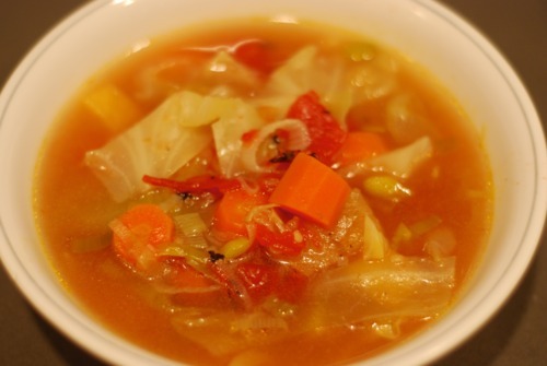 Once the soup was boiling, I turned down the heat to low and simmered it (partially covered) for about 30 minutes or until all the vegetables were nice and soft. I adjusted the seasoning with salt and pepper and then ladled up some bowls.