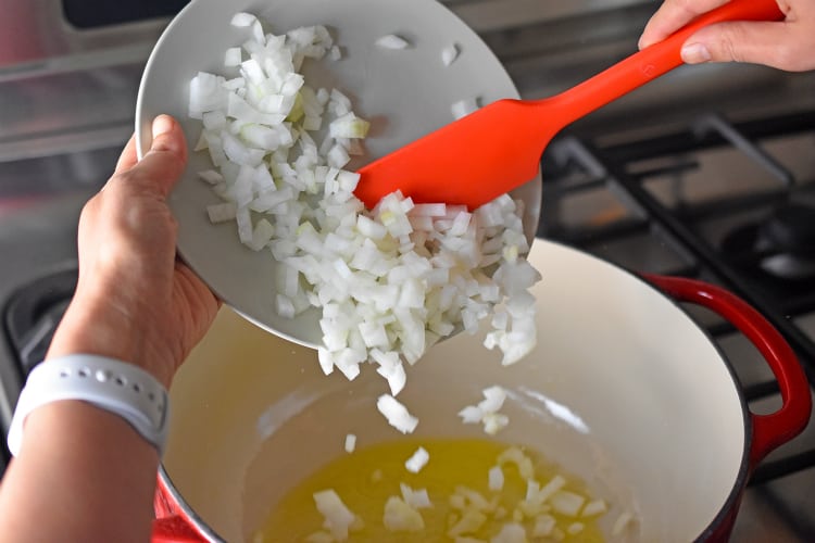 Heat the ghee in a large pot over medium heat. When the fat is shimmering, toss in the diced onion with a sprinkle of Umami Stir-Fry Powder or Diamond Crystal kosher salt.