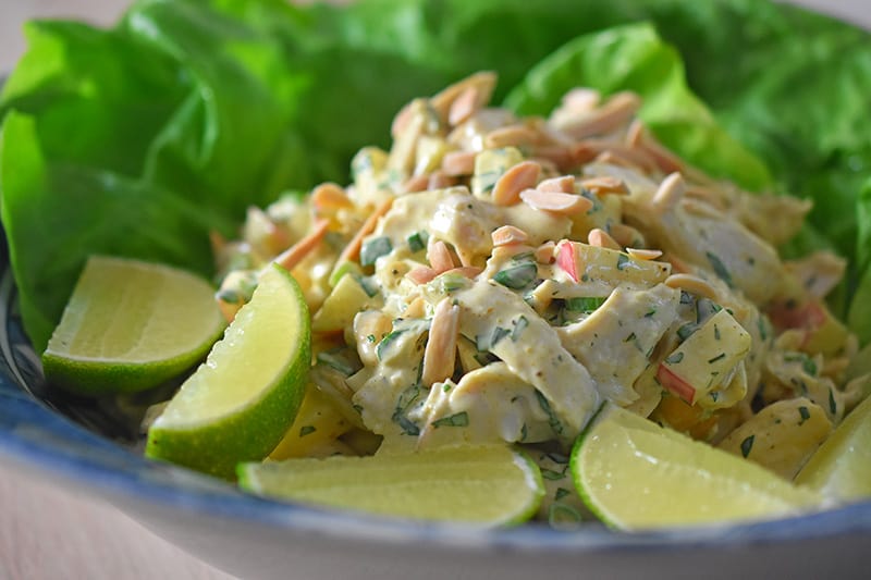 This South Asian-inspired Madras chicken salad recipe is a fan-favorite oldie-but-goodie from our first cookbook! When I’ve had a long day, I just throw this salad together and serve it on a giant bed of organic lettuce mix. Hosting a party? Spoon it into cucumber cups or on endive spears to make a fancy hors d’oeuvre. No one’ll guess how little time it took!