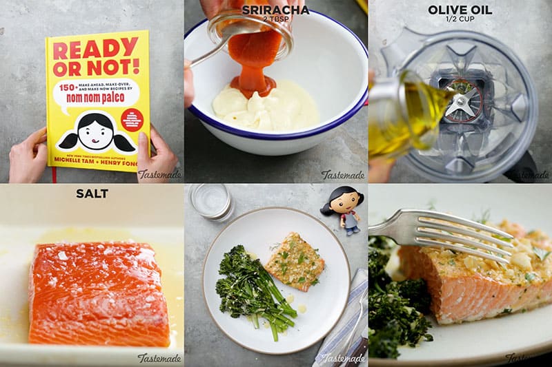 When our second cookbook came out, I flew to Los Angeles to shoot a few recipes from the book with my pals at Tastemade, and one of them was this tasty salmon dish paired with Roasted Ginger Sesame Broccoli—also from our new book.