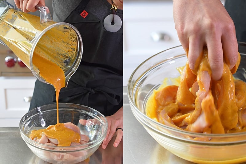 Cover the chicken and marinate in the fridge for up to 12 hours. Usually, I just let the chicken hang out in the fridge while Iโm preparing my side dishes for dinner.