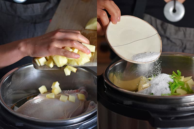Yes, Andrea’s original recipe uses apple in the broth so do add it to the stovetop version.