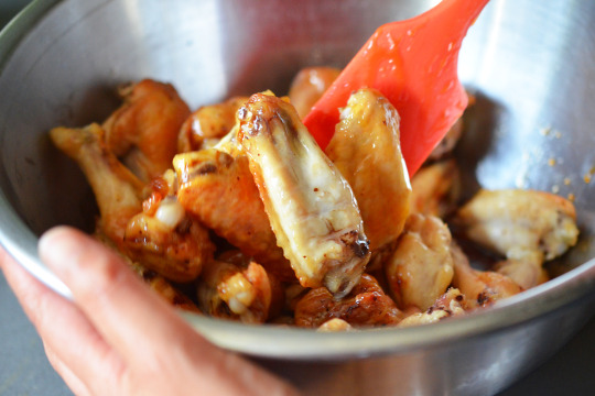 Toss the wings in the large bowl with the sticky sauce and mix well.