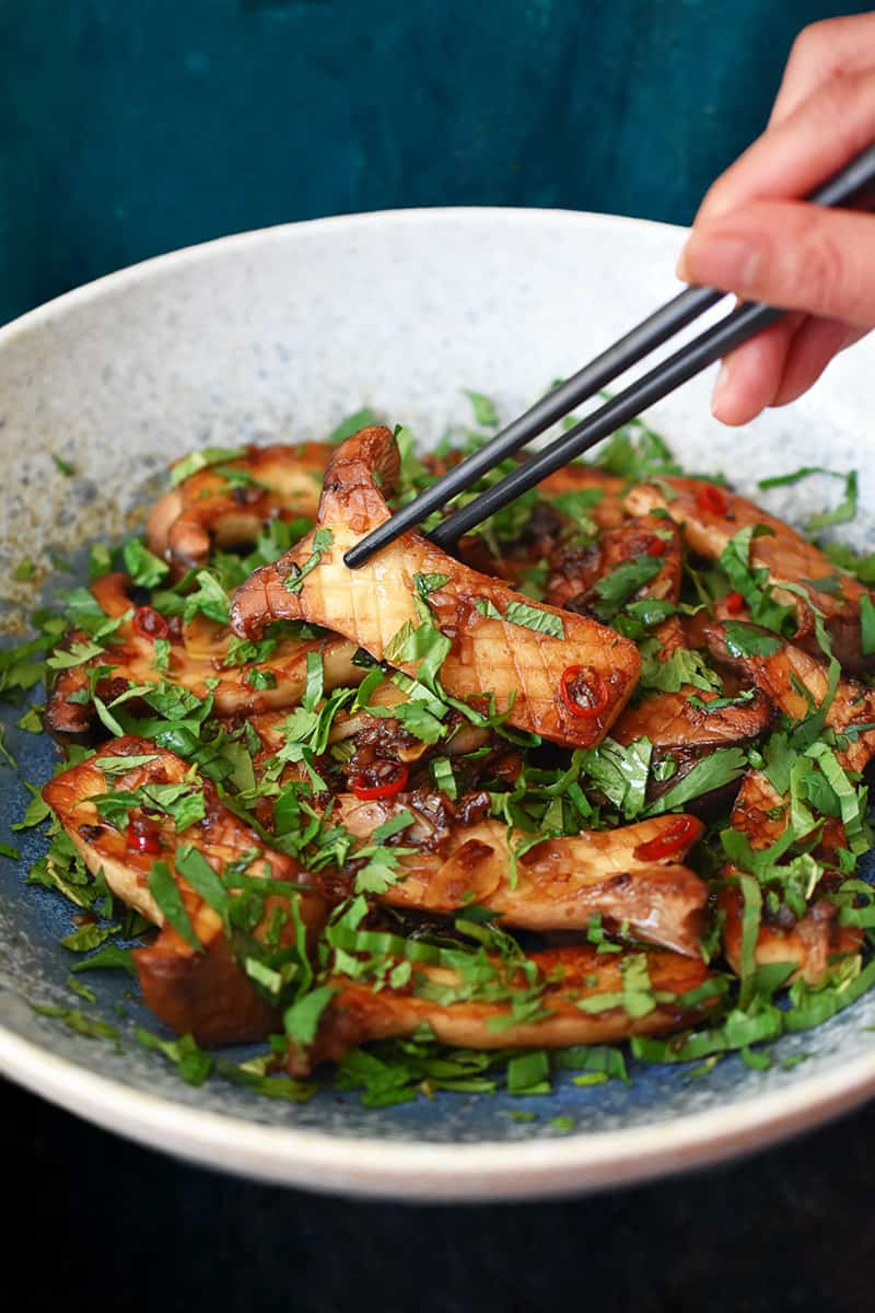 King Oyster Mushrooms with Thai Chili Peppers and Lime