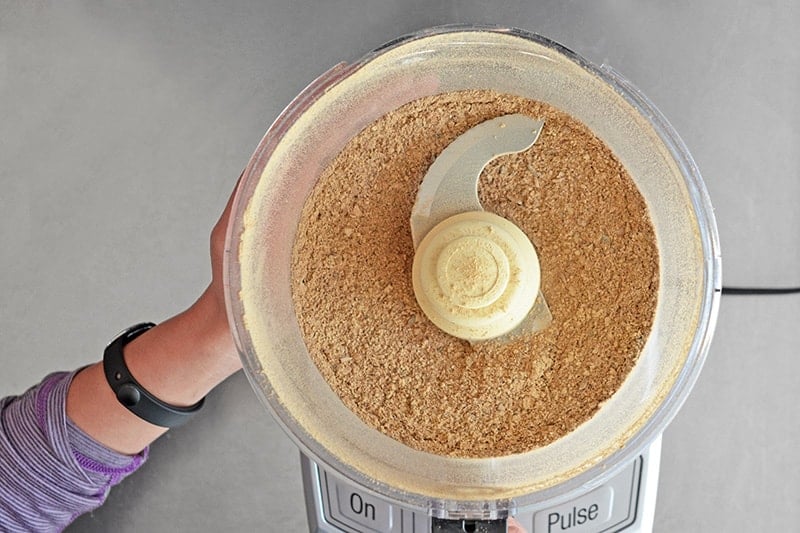 Next, turn the processor on for 2 minutes or as long as it takes for the mushrooms to break down into a fine powder. (If you use a super-charged blender like a Vitamix, you’ll finish in less time.)