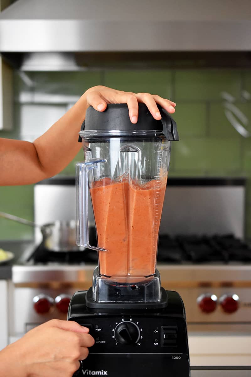 …and blitz on high until it’s smooth. (If your blender isn’t big enough, blitz the tomatoes in batches.)
