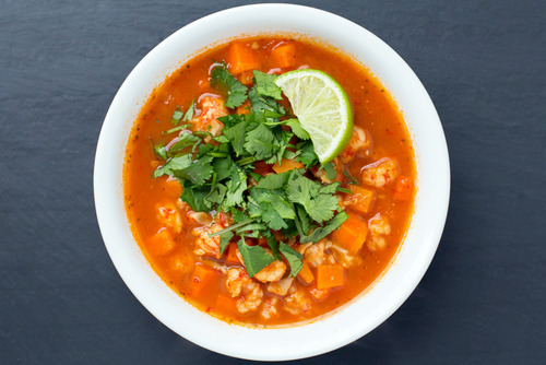This recipe in particular is modeled after a traditional Mexican soup, Caldo de Camarón, which is typically used with shrimp. If you don’t have any langostinos on hand, shrimp can be used with this recipe.